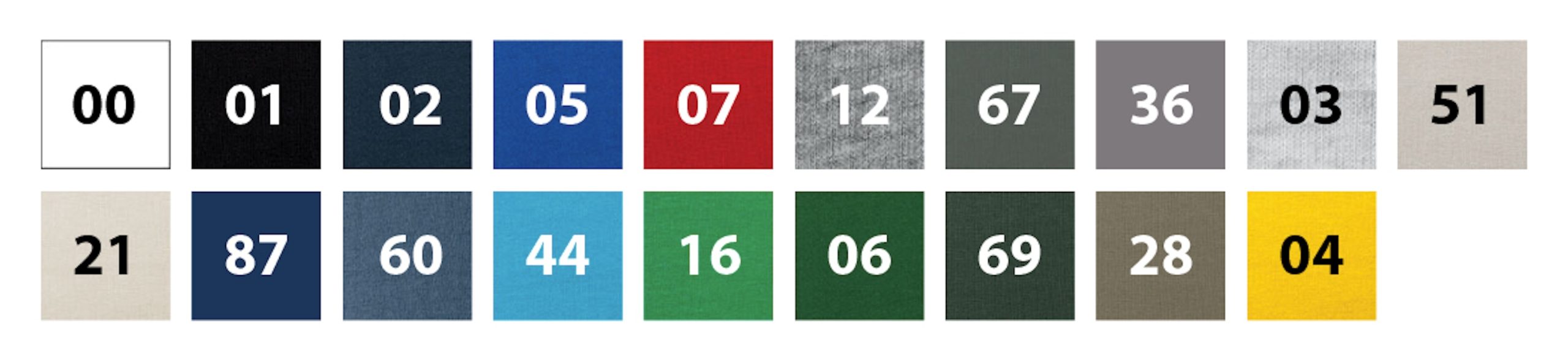 65 % cotton, 35 % polyester (composition of colour 12 may differ – 85 % cotton, 15 % viscose)